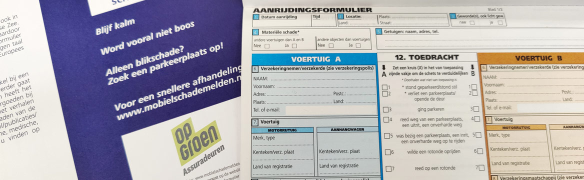 Je kan het schadeformulier downloaden van onze website. Zorg ervoor dat je altijd een exemplaar bij de hand hebt, voor het geval je betrokken raakt bij een ongeval.